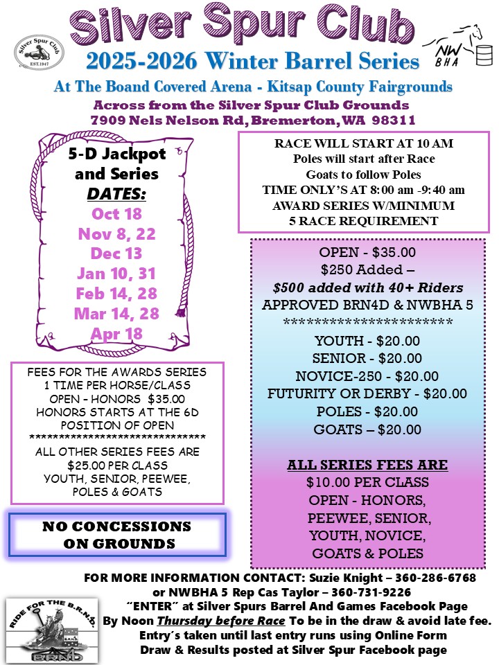 Barrel Series Home Schedule of Events Applications & Entry Forms Barrel Series Entry forms for the barrel series are located on the application & entry form page 2025/2026 Winter Barrel Series 10/18 RACE ENTRY 11/08 RACE ENTRY